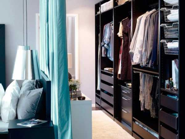 Гардеробная комната, оборудованная в спальне