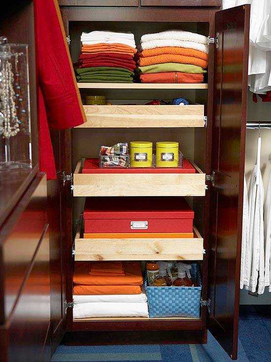 Помощниками в обустройстве рационального пространства для хранения станут различные аксессуары.