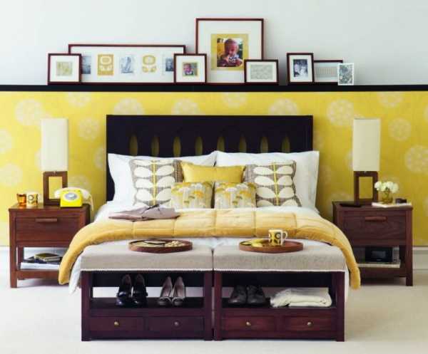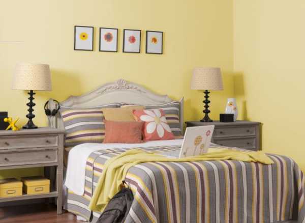 Пусть цвет стены, к которой примыкает изголовье кровати, будет желтого цвета, ярким, четким и сочным, как лимон.