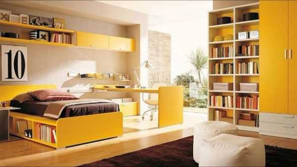 Оригинально и элегантно выглядит желтый в комбинации с коричневым – такое сочетание подходит для молодежной спальни.