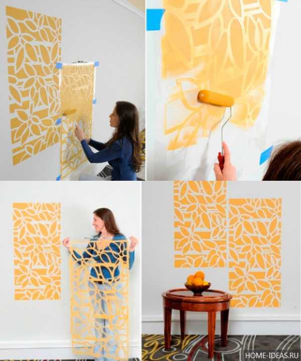 Орнамент или узор можно наносить на любые поверхности в комнате и даже на мебель. Для этого применяются специально подготовленные трафареты или шаблоны, которые позволяют покрыть одинаковым узором всю нужную площадь. Для рисования обычно используются акриловые и водостойкие краски разных цветов, а также краска в баллончике.