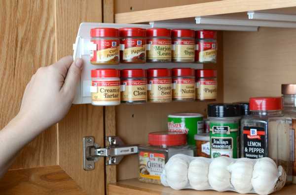 Тут вариантов может быть много. Один из самых популярных и удобных – хранение баночек со специями в выдвижном ящике. Уложите баночки так, чтобы специи было видно, если так не получается – напишите названия на крышках. Такой вариант позволяет держать все специи под рукой и, когда нет в них необходимости, скрывать от посторонних глаз.