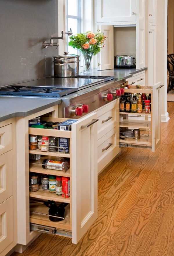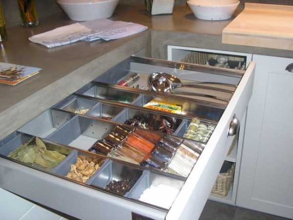 Некоторые производители мебели делают специальные ящички для специй в кухонных гарнитурах, чтобы у хозяек не болела голова куда девать приправы.