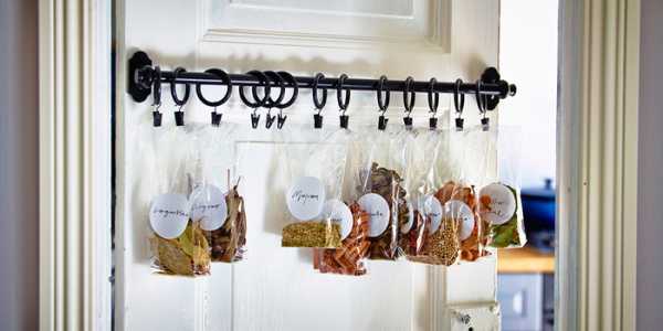 Для экономии места на кухне и оптимизации процесса приготовления еды можно использовать необычные способы хранения специй и иных сыпучих продуктов: