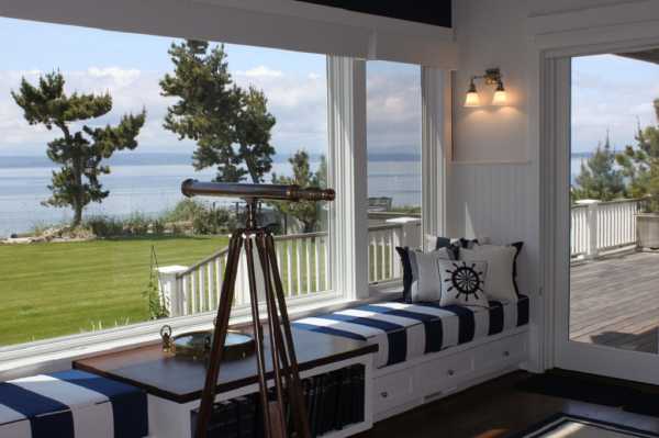Дизайн балкона в морском стилеОн должен дополнять интерьер и поэтому перед установкой нужно подобрать подходящий вариант. Красиво смотрится угловой вариант.