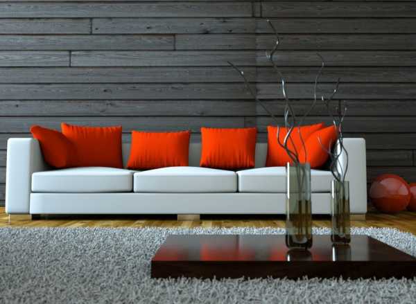 - Вдоль стены. Классическое расположение дивана: спинка параллельна самой длинной стене.