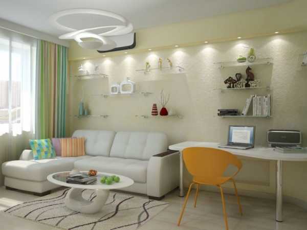 Важным моментом является то, что акцент в интерьере комнаты будет обращен на диван, поэтому создавая оформление, необходимо отталкиваться от него. Старайтесь создать пространство, которое будет полезным и функциональным. Промежутки на стенах вокруг окна можно заполнить полками для книг, а подоконник переделать в уютный мягкий диванчик.