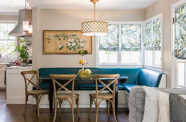 На кухне чаще всего размещают диван в углу комнаты («мягкий уголок») или небольшой двухместный. Обычно он занимает угол или пространство вдоль стены, максимально удаленной от плиты, мойки, холодильника. Так возникает разделение помещения на столовую (там, где стоят стол и диван) и рабочую зону (место, где хранят и готовят пищу).