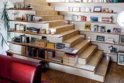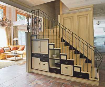 - В двухэтажных частных домах или квартирах место под кладовку-гардероб выделяют под лестницей.