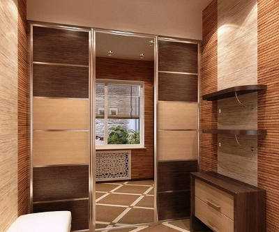 - желательно отдавать предпочтение мебели в виде антресолей, чтобы стены полностью вписывались в пространство. Если в прихожей есть пороги, то от них лучше всего избавиться. В этом случае можно будет поклеить одинаковые обои и в коридоре, и в комнатах, прилегающих к нему. Такой дизайнерский прием позволит убрать четкие границы. А это, в свою очередь, даст больше пространства. Двери шкафов можно украсить фотопечатью в тон основным обоям. Если фотопечать будет выполнена в одной и той же тематике с обоями, то коридор будет выглядеть очень гармонично. При этом оттенок фотопечати следует подбирать под общий цвет помещения;