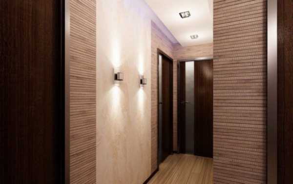 - в коридоре всегда недостаточно света. Специалисты по дизайну советуют в оформлении этой комнаты использовать дополнительные источники освещения. Они позволят сделать прихожую не такой мрачной и визуально увеличат. Правильнее располагать источники света в разных частях. Это может быть точечный светильник, который находится над зеркалом возле границы смежных помещений, или бра возле темной двери у входа;
