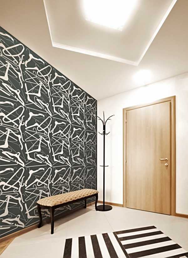 Белые обои в прихожуюИнтересные дизайнерские решения с темным дверным полотном