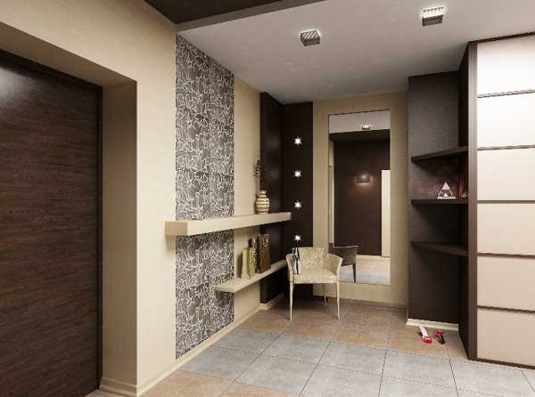 Конфигурация и размеры помещения играют доминирующую роль в ее оформлении. Дизайн в шоколадно — коричневых тонах немного разный в зависимости от размеров прихожей.
