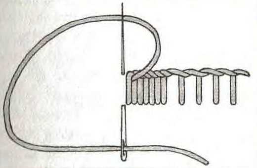 - Взять большую острую тонкую иглу и обметать ею края покрытия швом «через край» простым петельным швом. При этом, ничего не подворачивая и не загибая.