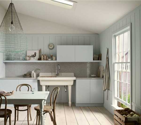 - Особое внимание уделите состаренному оформлению пола (должен быть непременно деревянный — дощатый или паркетный), потолка (необходимо побелить или покрасить белой краской) и дверей (должны быть покрашены белой краской).