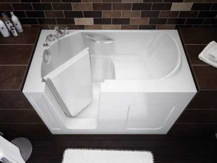 Самыми удобными являются ванны с дверцей, разработанные специально для людей с ограниченными возможностями. В зависимости от модели, дверцы могут располагаться с лицевой либо торцевой стороны, открываться внутрь или наружу. Высота входа всего 15 см, при общей высоте конструкции до 1,2 м. Внутренние поверхности нескользкие, обязательно есть поручни, в комплектацию обычно входит смеситель с термостатом и гидромассажные форсунки. Такие ванны идеально подходят для пожилых людей, семей с маленькими детьми, беременным женщинам, да и все остальные пользуются ими с удовольствием.