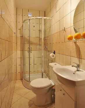 - Душевая кабина, в свою очередь, прекрасно впишется в интерьер самой маленькой ванной комнаты: размеры самых компактных моделей составляют всего 80х80 см.