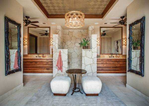 Удивительно, но некоторые из самых роскошных душевых в ванной создаются без помощи душевых ограждений вообще. И даже без дверей! В таких случаях зона душа выделяется поддоном и/или участками стен, а при наличии хорошо функционирующего слива может просто быть частью комнаты, без каких-либо переходов.