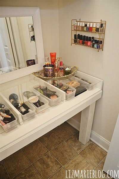 24. Туалетный столик со стеклянной столешницей позволит вам видеть все свои запасы косметики