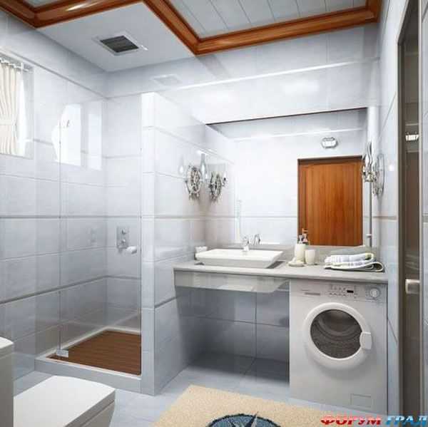 - отдайте предпочтение душевой кабинке, тогда в помещении разместится ещё и стиральная машина.