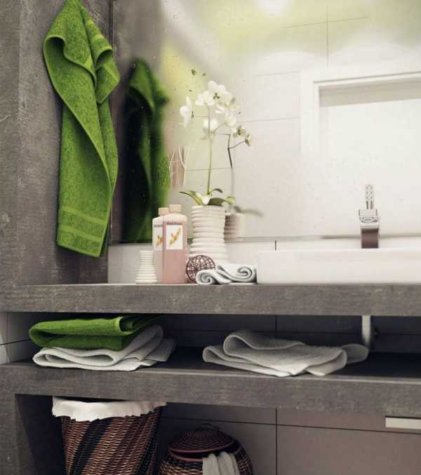- вместо умывальника-тюльпана остановите выбор на стойке с полочками вверху или шкафчиком снизу. В них можно хранить как гигиенические средства, так и полотенца;