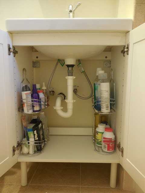 13. Подобные подставки под раковиной фактически уничтожат беспорядок в ваших баночках