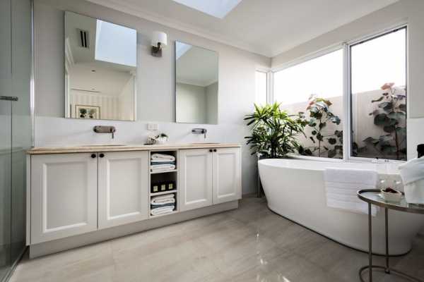 - Свободное и светлое пространство. Недостаток солнечных лучей в суровом северном климате компенсируется обилием светлых оттенков в интерьере ванной комнаты.
