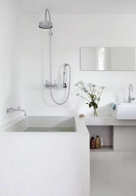 Для комбинирования отделки ванны белого цвета подходят следующие оттенки: