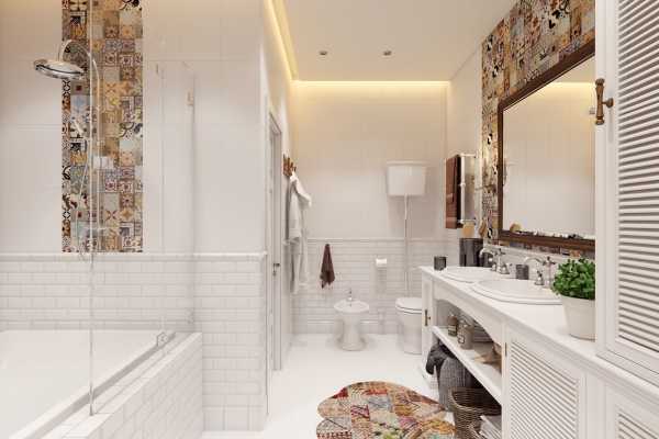 Эта разновидность оформления пространства помещения ванной прекрасно подойдёт для семьи, которая состоит из 3 человек.