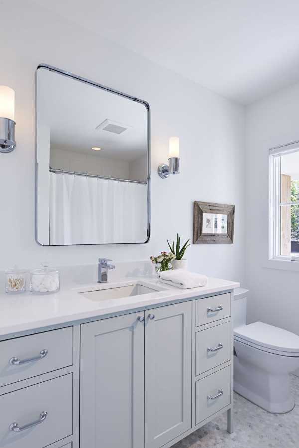Одна из важнейших проблем, с которой сталкиваются семьи – это захламленность, с этим надо бороться! Но решение есть. Необходимо поддерживать порядок и чистоту около раковины и на открытых поверхностях, ведь на светлых тонах особенно заметна грязь. Убирать полотенца и вещи в специально отведенные для этого места: коробочки, коробы, органайзеры для белья, которые можно разместить на тумбах. Мелкие конструкции можно поместить в модные стеклянные шкафы. Вы сразу заметите как у вас стало свободно!