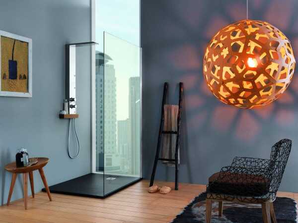 Отдельно обращаем ваше внимание на деревянные поддоны для душа, а точнее решетки, которые не только украшают ванную, но и защищают вас от возможности поскользнуться на гладком кафельном полу.