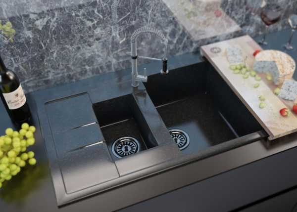 Мойка черного цвета хороша еще и тем, что на ней меньше видны дефекты, а также загрязнения. Ее легче мыть и очищать с помощью обычных подручных химически средств.