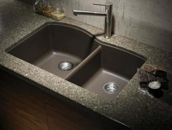 Вас должен удовлетворить и высокий уровень шумопоглощения, отсутствие жирных пятен, а также дизайнерское разнообразие в реальном исполнении. Однако при выборе следует обращать внимание на содержание каменной крошки. Чем ее больше в составе, тем прочней и качественней мойка.