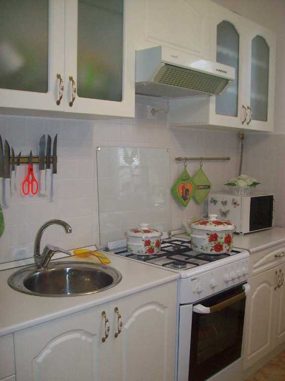 Для кухонного пространства маленькой площади подойдёт мойка одночашевая и не большая быттехника.