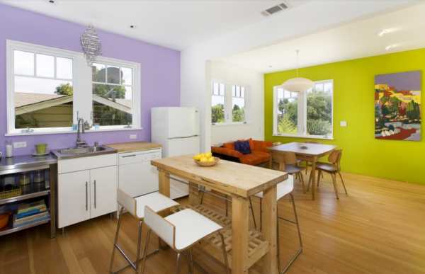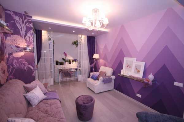 Также при выборе цвета стоит обращать внимание и на размеры помещения – светлые тона визуально расширяют пространство, темные же – скрадывают. Очень популярное решение сейчас – окрашивание в три цвета. Огромную роль в этом способе играет контрастность в сочетаниях. Чем более ярким будет соседний цвет, тем меньше помещение будет визуально. Поэтому дизайнеры рекомендуют быть поаккуратнее с модными сегодня фиолетовым, винным, терракотовым.
