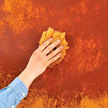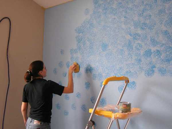 Метод окрашивания в стиле “спонжиг” является еще одним решением проблемы “скучных стен”. Данная техника состоит в том, что при покраске пользуются не валиком или кистью, а обычной губкой либо щеткой. Для окрашивания методом “спонжиг” лучше выбирать пастельные или теплые яркие тона водоэмульсионной краски.