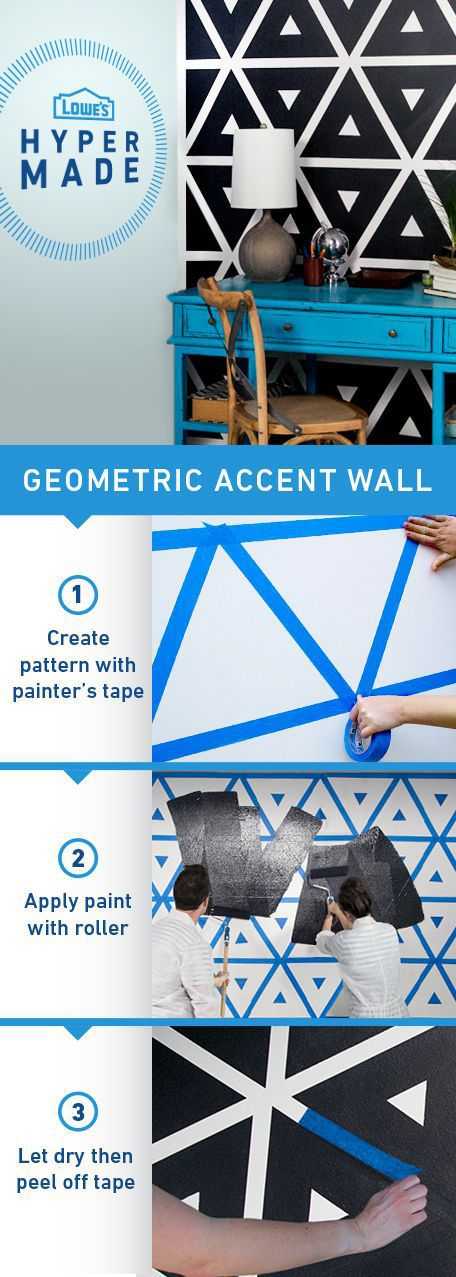 10. Сложный геометрический мотив лучше разместить лишь на одной стене. Такой узор легко сделать с помощь малярного скотча и валика.