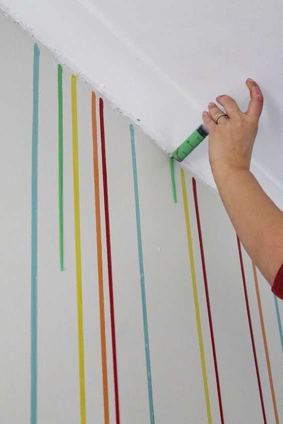 В этом случае не понадобятся ни кисти, ни трафареты, ни валики. Для ровных стекающих линий используйте шприц, регулируя ширину полос лишь размером отверстия шприца.