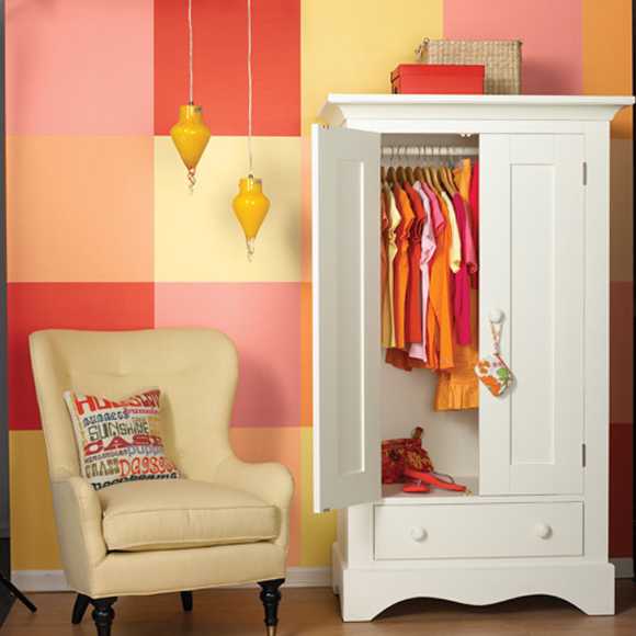 Такая техника подразумевает окрашивание стен большими разноцветными квадратами, которые имитируют лоскутки ткани. Квадраты лучше делать размером около 30 см и оттенки желательно выбирать в близкой цветовой гамме.