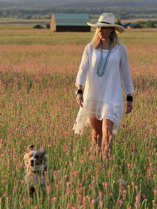 Также любимое сочетание индейцев приглушенный красный (или терракота) и ярко-голубой. Материалы используются, преимущественно, натуральные. Для этого стиля характерны контрасты нежных, женственных и грубых элементов, например, кружева и джинсы, оборки и грубая обувь, цветочный рисунок и трикотаж крупной вязки… Подчеркивается удобство и практичность; объемные сумки, низкий каблук, заплатки и потертости…Стиль подходит всем женщинам готовым проникнуться философией Дикого Запада, тип фигуры, комплекция и рост не имеют значения.