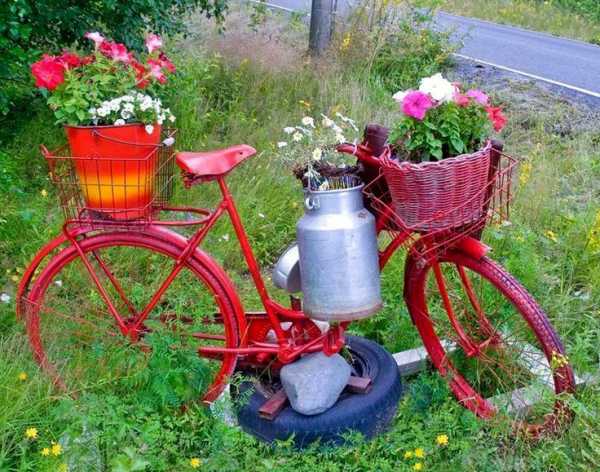 Идея использовать велосипед в дизайне сада или загородного участка для многих не кажется оригинальной. Но велосипеды очень разные, у них разная степень старости и износа, но главное то, что они подойдут под все цветы, которые нравятся вам.