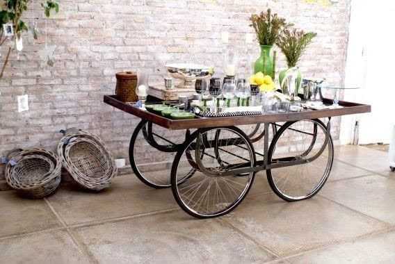 Благодаря такому мобильному сервировочному столику будет легко устроить вечеринку в саду или праздничный обед. А чтобы в летний зной отдыхать под тенью деревьев, скамью на велосипедных колесах можно просто перевозить из одного края сада в другой.
