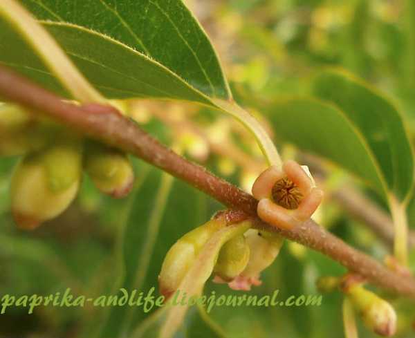 Это красивое деревце высотой до 10 м очень декоративно во время цветения, когда раскрываются его белые с ярко-пурпуровыми тычинками цветки. Но особый шарм г. лохолистной придают серебристо-зеленые листья изящной ланцетной формы, схожие с листьями лоха, за что растению и дано его видовое название.