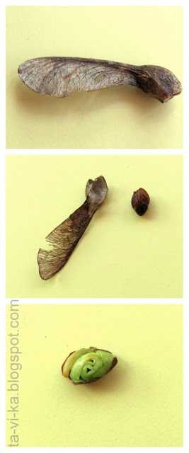 Мы взяли домой три семечки клена, положили их во влажную тряпочку и поставили ее под батарею.![]() |
