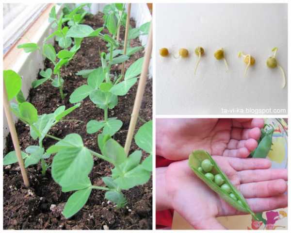 В прошлом году мы точно так же проращивали горох. Это беспроигрышный вариант, так как горох, в отличие от семян клена, прорастает быстро и дружно. И очень скоро из маленького растеньица вырастает целый куст, с которого можно собирать вкуснющие стручки зеленого горошка.