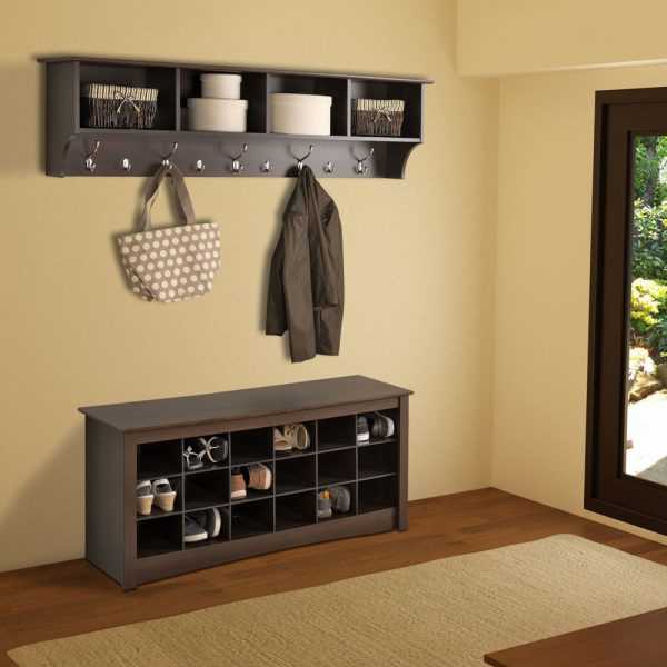 Вешалка настенная с обувницей для прихожей 41 фото: