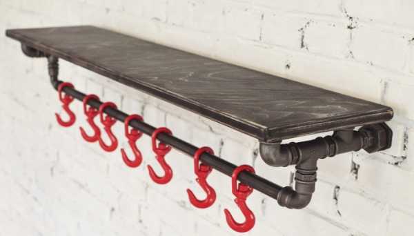 - Также вешалка может иметь крючки или быть предназначенной для того, чтобы вешать одежду на плечики. Какая будет удобнее именно для вас, зависит от ваших предпочтений и от того, какую одежду вы будете вешать. Можно совместить то и другое, если крючки будут прикреплены к перекладине, как на фото.