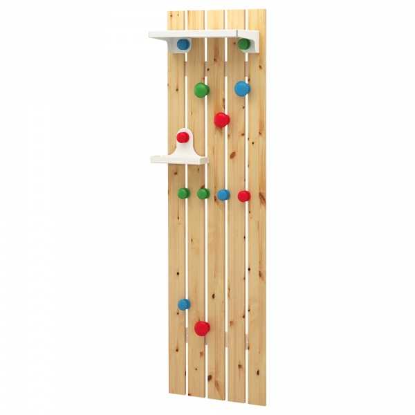 Недостаток в том, что для тяжестей он не предназначен. Чтобы вешалка была не только украшением, но и функциональным предметом интерьера, необходимо для поперечных перекладин, находящихся за декоративными досками, использовать прочный прессованный материал или бруски натуральной древесины.