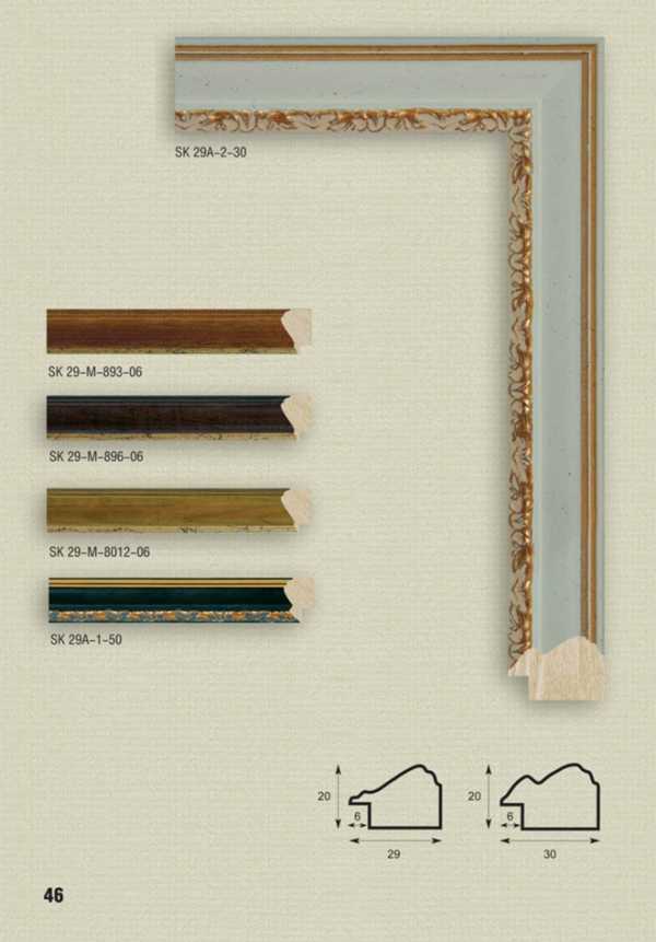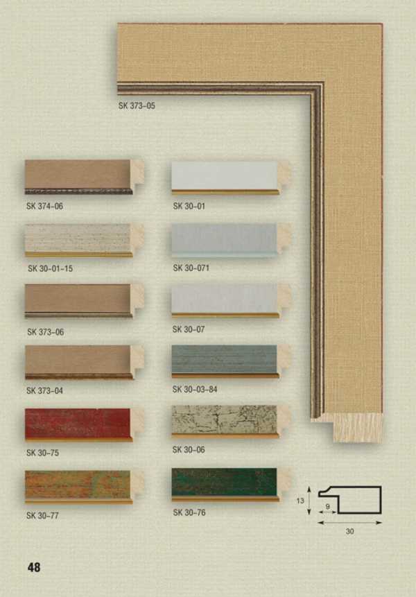 Кроме того, что багеты изготовлены из различных материалов, они еще имеют разный цвет, рельеф и ширину.