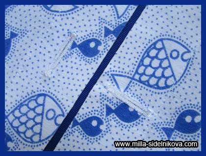 Под эти пуговицы на левой и правой сторонах полочки выполняются прорезные петли нужной длины. Только на одной стороне петля делается горизонтальной, на другой — вертикальной.